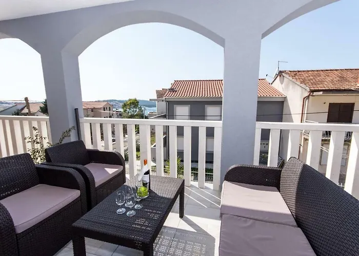 Die Gäste des Apartments können das Stadtzentrum von Trogir innerhalb von 25 Minuten zu Fuß erreichen. Kirche vom heiligen Sebastian befindet sich 25 Minuten zu Fuß entfernt. Copacabana Beach Okrug Gornji liegt nur 6 Minuten zu Fuß vom Apartment entfernt.